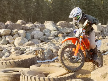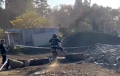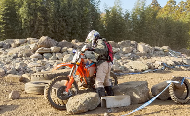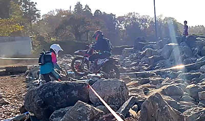 そのガレ場、とその後に来るタイヤ越えセクションにはK原くんは苦戦したようですね。