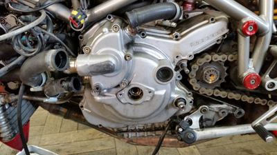 ご近所さまメールからのお問あわせにて修理依頼でした ドカの998さん。珍しくビポストさんです。シフトの感触がおかしくなりギア変速できなくなったとのこと。この手は今まで国産も含めて おおよそのパターンで 内部のリターンスプリングの欠損というのが多いですが。