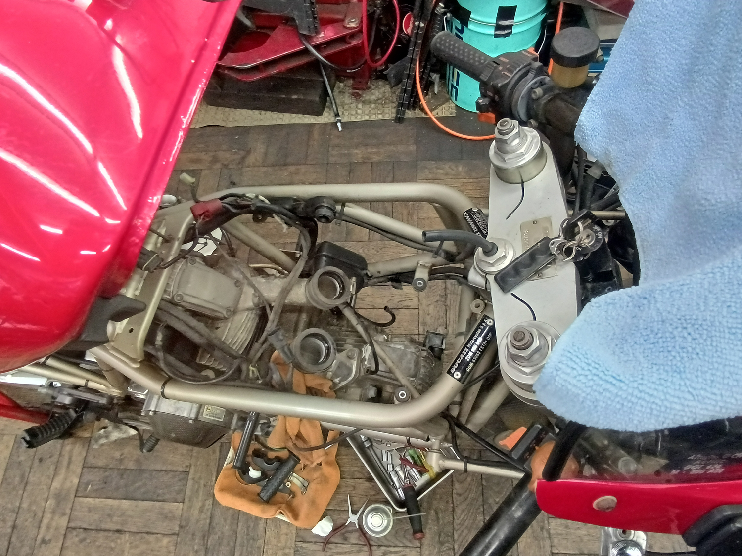 大きなずれもないですが 微妙なずれは気持ちよくないので調整しますが この調整ネジが900SSはやりづらい!! 調整しているときはいつも変な顔になっているはずです(笑)。