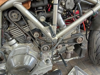 この頃の 900SS、SLは タイミングベルトのプーリーも純正は全て鉄製なので 不動歴長い車両の場合 屋内、屋外関係なく 錆びてしまいますね。