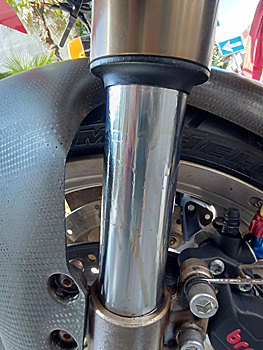 そして登録車検が完了して軽く試走で追加トラブルが フロントフォークシールからのオイル漏れ。