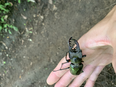 途中 渡くんが地面に落ちていた ミヤマクワガタを発見。tetsu息子も同行していましたが他一倍興奮していたのはSinくんでした(笑)。