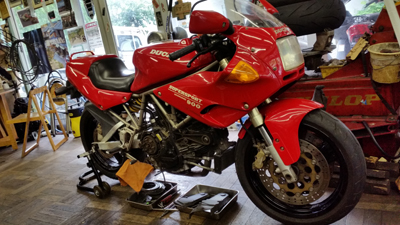 トラスト時代から川口より長らく いらしていただいている Nさん 900SS。車検依頼です。この方は 定期的オイル交換も一年に二回ほど欠かさず持ってきてくれますので定期交換部品の状態管理をtetsuもしやすく 調子も良く、上手に乗られてきています。