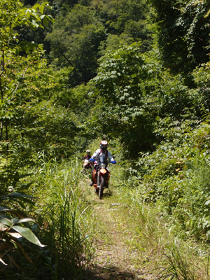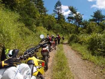 朝8時には出発したいところでしたが用意や清算で時間をとられ9時前に出発となってしましました。この日は朝から天気は良く 暑過ぎなければ林道日和です。
