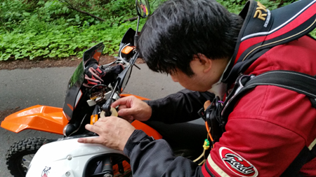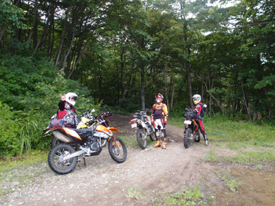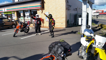 1日目の郡山からの出発で揃ったのは 3人。tetsu KTM690EDR、O田くん=KTM690ED、フジくんDRZ400S。