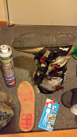 この宿に着く前に 近くに コメリがあるのを発見したので 夕食前にtetsuはブーツ修理用の材料を買い出しに。ブレーキペダルがソールとブーツ本体の間に刺さったため ソールが半分ほど剥がれてしまっていたので(林道から 宿まではひとまず ビニールテープグルグル巻きでの応急処置)それを修復するべくです。この手に強い接着剤と脱脂クリーナー、ペーパーウェスを購入してきました。この後 クリーナーとウェスは後半でも活躍することになるとは...(苦笑)
