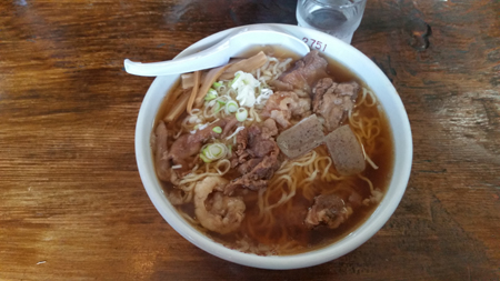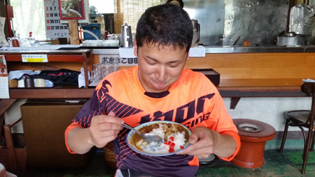 この間にころあいよく食事どころ発見。 tetsuはここのおススメラーメン(牛スジ入り)を食べました。美味しかったですね。ササくんは いつものお約束の 「カレーライス」でしたが(笑)。