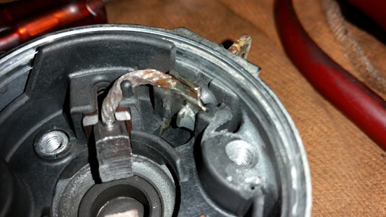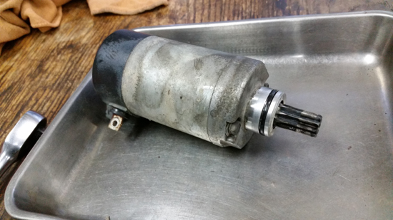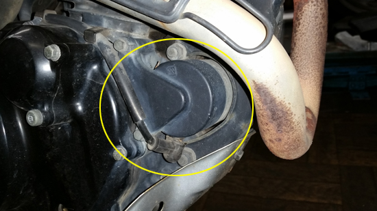 左エンジンカバー開けまして、よく見る光景でした。