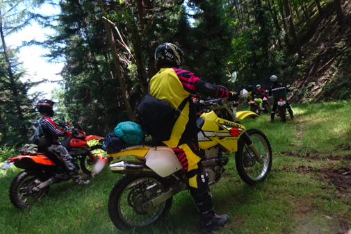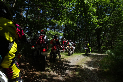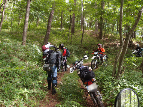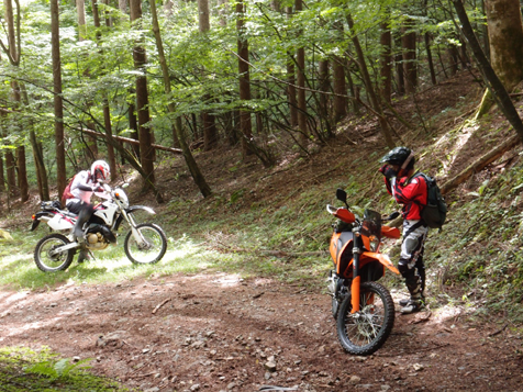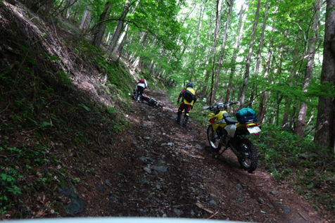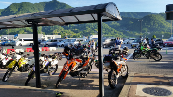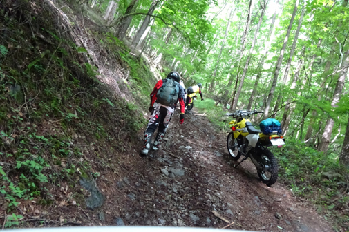 KTM690ED系 2台、CRM250 R、AR系 3台、DRZ400 1台、KLX2501台、セロー225 1台の総勢8台での道中です。