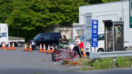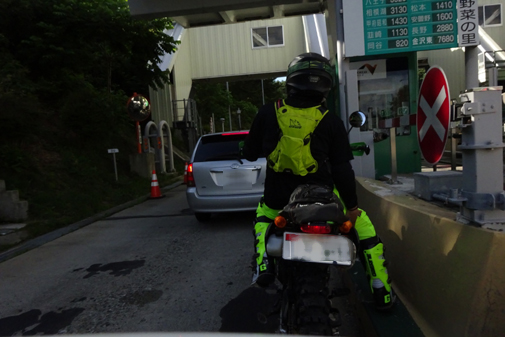 この渡くんKLXが通行券無くしたと(ETC非装着なので) (汗)。 出口ゲートで5分ほどすったもんだしており 結局 別棟に連れていかれました。仕方ないのでtetsuだけそこで待つことにして他のメンバーは コンビニで買い出ししていってもらうことに。