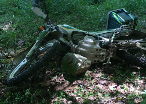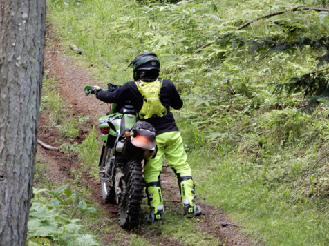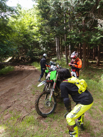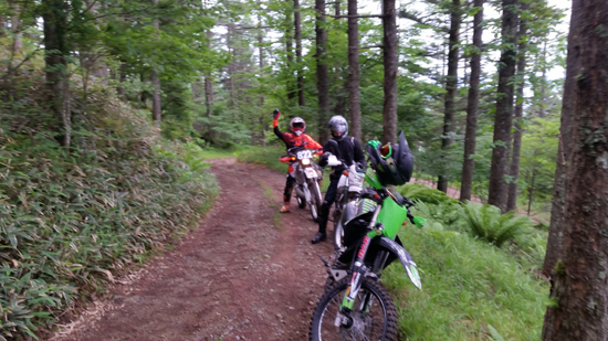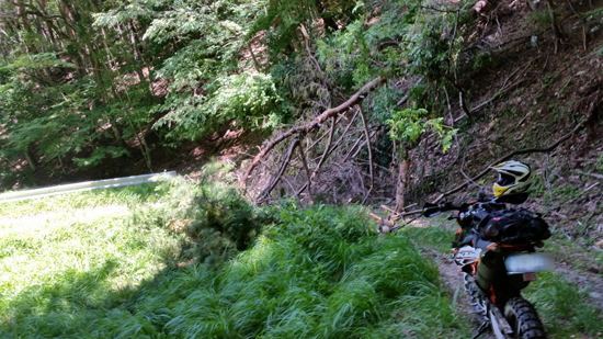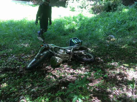 しかしこともあろうに、tetsuの貸し出しCRMAR号で!! ま、「転んでいいよ」って貸していたので本人に怪我なければいいのですが。ミヤくん 自分号のKTM690EDR号が この林道中の一週間前に急患で預かりになり 修理が間に合わなかったため 可愛そうなのでtetsu号を貸し出してあげることになった経緯です。そうでなければ 愛機は貸しませんです。