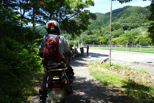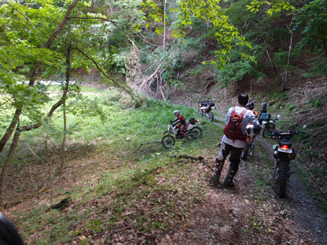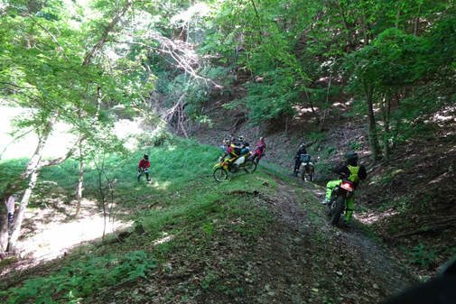 最初の林道は約 9キロ。前半は登りのガレ気味林道とのこと。tetsu先頭に突入していきます。確かにガレてましたが それほどでも....と思いつつも 後続が気にかかり 半分ほどで一端 後ろを待ってみます。