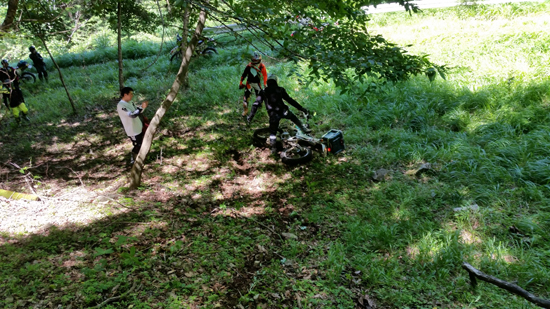 ガレに慣れてる 渡くん、ササくんとやってきて オフ初心者のタキさん も無事やってきましたが そのあとが来ません..... で待っている間の状況がどうなっていたかという と。