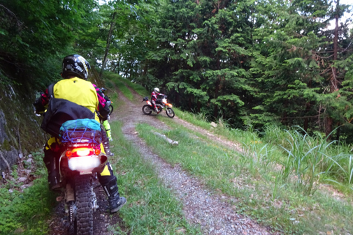 余談ですが、オフ車で林道中毒になってくると 「ドア to ドア」で 林道のみ走りたいと 思うようになります(苦笑)。