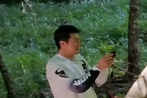 この区間は渡くんがtetsuの後ろ走っておりましたので そこそこ気をかけていましたが ふと気が付くと後ろにいない! で、戻ると 丁度 ぬかるみ路面の手前のカーブで ほぼ 「スッテン」と転んだようです。肩から落ちたらしく しばらく痛がっていたので そこで後続待ちながら休憩を。