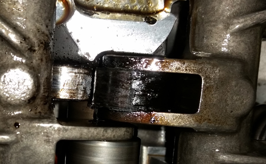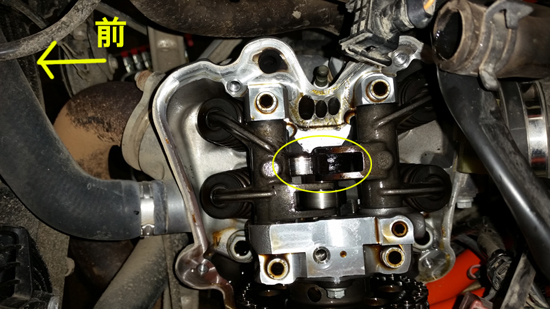 KTM690 ENDURO R エンジン不調修理 全車皆兄弟 2018年08月06日 伊東二輪林道部のミヤくん690。部品欠品で約一か月お預かりでしたがようやく先週納められました。発端は 他の林道部連中と河原練習に行っていた際、頻繁にエンジンがストールすると。しかもエンジンの力もないとのこと。どうも アフターファイヤーも煩雑に起こるらしい。 で、お店に見せに来た際に その内容よりも エンジンの異音の方が激しく(汗)..... 本人はあまりそちらには気が行ってなかったようですが。元々 メカノイズが多いエンジンですし マフラーも交換している車両でしたので無理もないですか。 兎に角 一度ヘッドカバーを開けて内部を見た方がよい事で 即入院してもらいました。バラバラとバラしていき ヘッドカバーを開けた瞬間に 音の原因が理解できました。 吸気側ロッカーアームのローラベアリングが焼き付いてしまってました。そのまましばらく酷使していたので 必然的にカム山も削れてしまってます。この状態では タペットクリアランスも「過大」過ぎです。 吸気側のクリアランスが過大なので 必然的に バルブ開閉タイミングが 遅く開き、早く閉じ またカム山も削れているので バルブリフトも少なくなるので 最適な混合気の吸入がなされなくなります。 なので必然的にパワーもなくなります。 オイル管理はちゃんとしていた車両でしたので 使用環境等にもよりますが ロッカーベアリング部の工業製品的な摩耗でしたかね....... 可哀そうですが、ここでバラした不幸中の幸いってことで(ベアリング粉砕より全然マシです)、インテーク側ロッカーアームとカムシャフトを新品交換です。このカムシャフトが品番変更になっており 本国バックオーダーになってしまい 時間を頂きました。 新品が入荷して 即エンジン組み 再度タペットクリアランスを測定。今回は 今までの物で範囲内なのでそのまま組み上げました。始動して ヘッド周りの異音は当然ながらなくなりました。 水温上げても アイドリングも安定しておりひとまずOKです。その後 試走6kmほどでも問題なかったので 全部の因果関係は 今回の部分に関わっていたということでした。 預かっている間に頼まれた、ハンドル交換&エンジンガード装着の方が なにかと時間がかかったような印象が.....(苦笑)。ミヤくん 重くなった(笑) EDRで 心折れないように (苦笑)お願いしますよ~~。週末のスーパー林道中で楽しみましょう!!