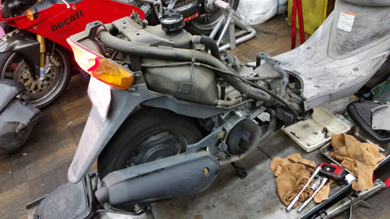 8時間の出場声掛け人兼 車両提供者にて 林道部で今年初めから一人で勝手に参戦し始めた ササくんCRM250R号。最近 トランポとして入手した旧ステップワゴンに 見事に乗っかってきました(驚)。昔から ロードレース側では5ナンバー車としてはステップワゴンはトランポとしてよく使われてましたが、オフでも行けるとは。フロントフォークを縮めずに載せてこれたのがこれまた意外でした。