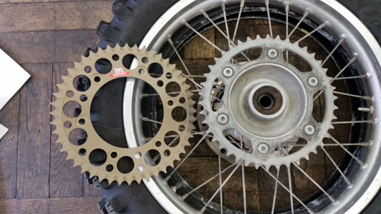 で、今回は 水温対策でサーモスタット改造とリヤスプロケットをエンデューロ向きの 48へ換装です。今まで 林道兼用の フロントのみ1T落としの 13-42でしたが 大幅にローギヤに向けます。これで2速発進となり、細かい技の時に 1速を使うようでしょうか。ついでに謎の 中華製 クラッチレバーの改良もしてあげて ひとまずこれでOKでしょう。