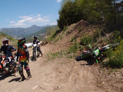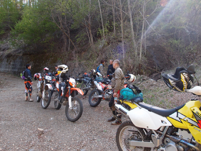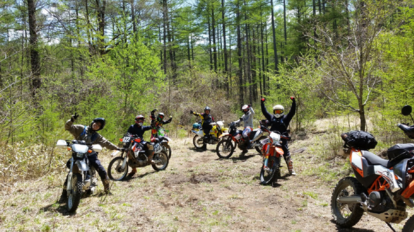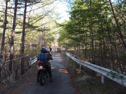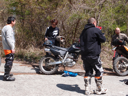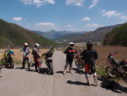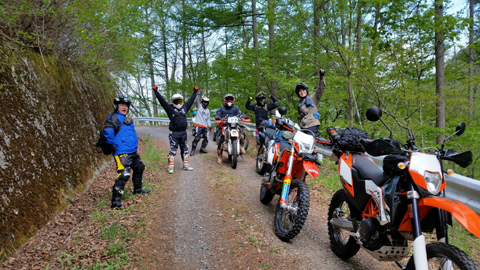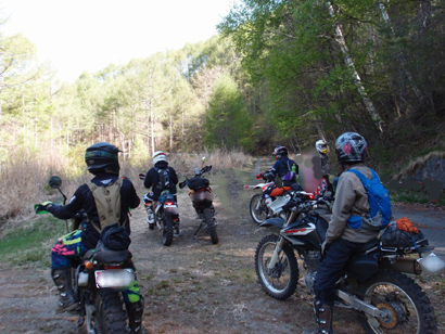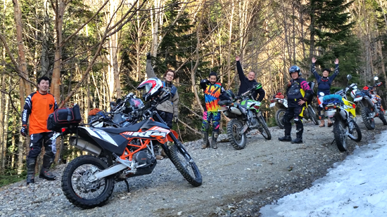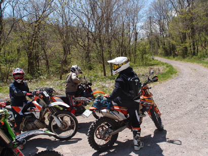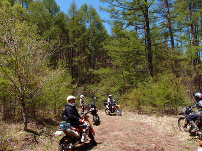 問題は下のゲートが開いているかでしたが、下のゲートは開いていたのでラッキーとばかりに 林道入口に向かいます。初日最後の林道ということもあり、皆 気合入れて走ります。いつもながらにガレてましたが まだ誰も通行してなかったのか? 他のオフ車の付けた轍も見受けられなかったので.....