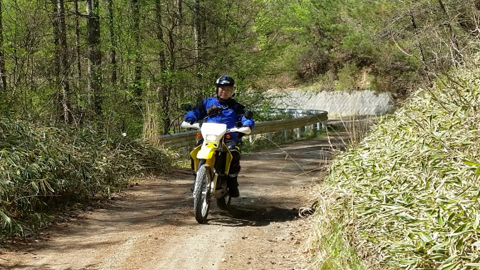 ↓それにしても毎回 林道走ると笑顔を絶やさない パン屋くん。これ見るとこちらも笑います(笑)。