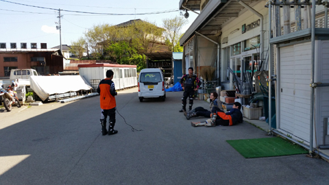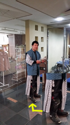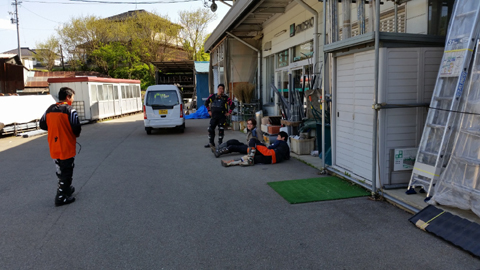 ↓ ひとまず 荷物用ロープをゲットして嬉しいミヤくん 後ろ姿。っていうか、他の連中は店前なのにくつろぎすぎだろ!!(笑) ↓