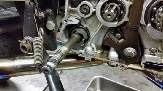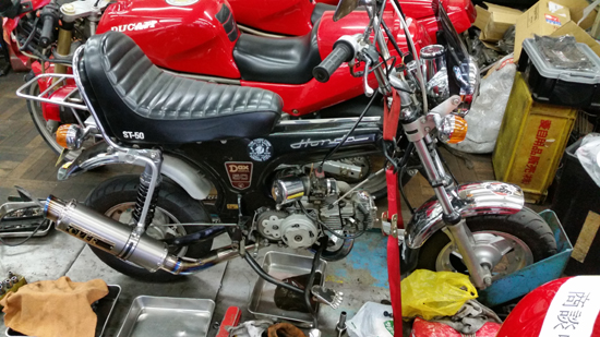 こちらは tetsuがノービスレーサー当時からの 28年来 盟友兼 常連様の ニシモくんのDAX。古い方の ST50ベースの改造車です。トラスト時代に購入いただいた車両です。長年 日々の通勤仕様で乗ってましたが 「てっつぁ~ん (泣)キックがプラプラになったぁ!」との連絡が。話を聞いていると キックは出来るけど 定位置に戻って来なくて プラプラだと。推測できるのは キックのリターンのスプリングが折れたっぽいのですが 開けて見てみないとです。