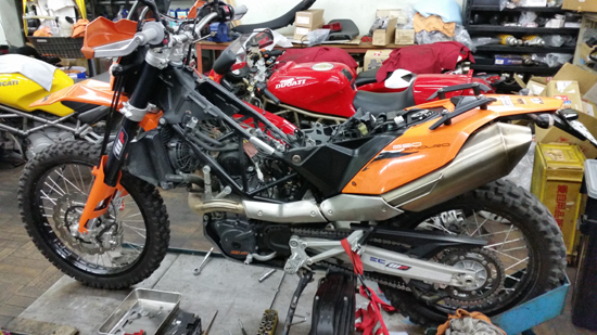 先日 車検でお預かりした 林道部隊の KTM690ENDURO ヨッシー号です。ヨッシー号は林道はもとより通勤普段使いもこの車両ですので 必然的に一年での走破距離が多くなりますので 距離相応に診ておかないといけない部分が増えます。