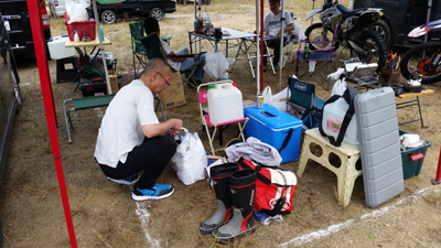 レース後 伊東二輪林道部、誰もリザルトは見ずに さっさと後片付けに入ります。