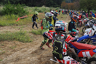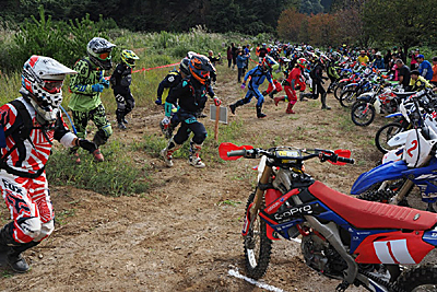 スタートは全員モトクロスコースの外周にゼッケン順に並べます。