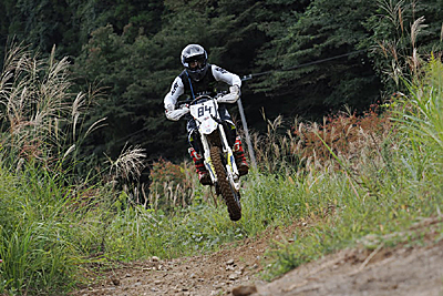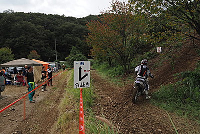 この時は若干の疲れとピットインすることでの安心感からか コース ウッズセクションの最後のある下りの急斜面で集中力を欠いて フロント滑らせて この日初転倒。