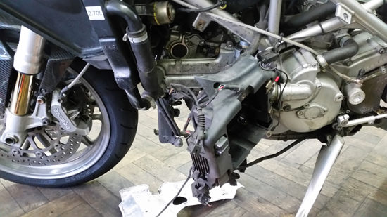 後は バタバタと組み上げて 始動!! 気持ちよくエンジンかかり 90度くらいまで水温あげても問題ありません。最後に試走して 終了。バッテリーはバッテリーで経年劣化が見受けられましたので そちらも新品交換。ついでに 本人さんが気にしていた 左カウルのヒビ割れも悪化しないように細工して 無事全て完了。最初から 一気に燃料ポンプが壊れていてくれれば分かりやすかったのですが 全てが同じように壊れるのではないのが 工業製品です。Yuzawaさま お待たせして申し訳ありませんでした。また元気に乗って行ってくださいね。