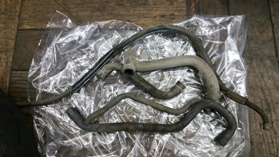 スぺイシー100 劣化ホース類交換 全車皆兄弟 2017年06月13日 スぺイシー100さん あるあるな修理内容です。スぺイシー100さんも製造年式によっては15年近く経っている車両が多々ありますね。そういった車両で 吸気周りに係るホース類の劣化により 始動困難やアイドリング不良、走行不良と様々な事柄に係って来る症例があります。 スぺイシー100はキャブ車で排気ガス規制に立ち向かう時代の車両でしたので これに係るホース類が所せましとエンジン上部、キャブ周りや燃料供給装置類に配管されてます。 ホース劣化は 表だって見える箇所もあれば 外すまで解らないこともあります。 伊東二輪の経験上 そういった可能性のある車両は この周辺に係る全てのホース類を新品交換を推奨します。 と全部交換するとこんな感じです。大小様々な配管がありますが このうち しっかり生きていたのは 一本くらいですか..... 後は もうすでにかなりの亀裂のもあれば 差し込み部分が切れ始めているのもありましたからね。