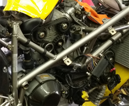 この手のSBKはそのサスペンションの硬さからか 当時乗られている多数の方が セッティングを柔らかい方向にしていました。当該車両も入庫時に診たときには 前後サスとも ほぼ抜き抜きセットになっていました。確かに フワフワ動いて 乗り心地はよくなりますが、あまりに減衰力を抜きすぎな状態では 本来の996の持つ 「レールの上を走るような」レーサー走りが隠れてしまいますので 勿体ない話なのですが.......
