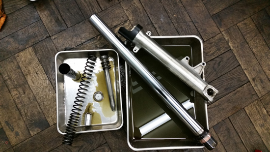 皆さんフロントフォークのオイルはオイル漏れしていなくても定期的にもフォークオイルも交換した方がいいですよ。
