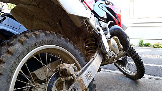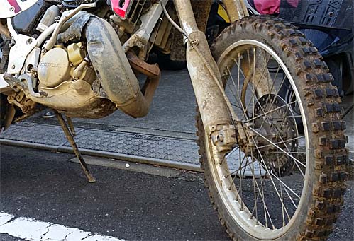 先週のIKAさん修行が役立ったか、そのまま転倒は免れましたが リヤタイヤみたらペッチャンコ(涙)