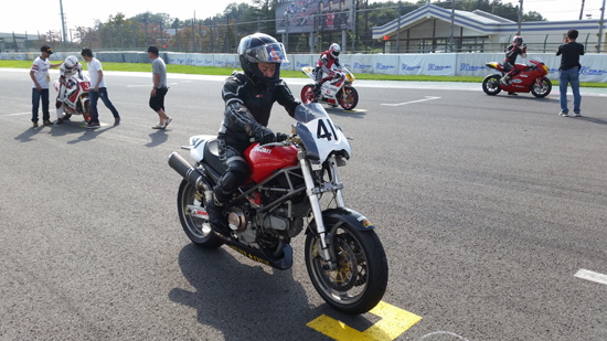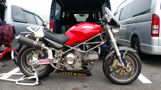 車両はサーキット専用車で使用のドカの M900Sieです。MAX10にも 公平を期すために 空冷と水冷とでクラス分けされています。高見氏は MAX10-A 空冷の方に出場です。