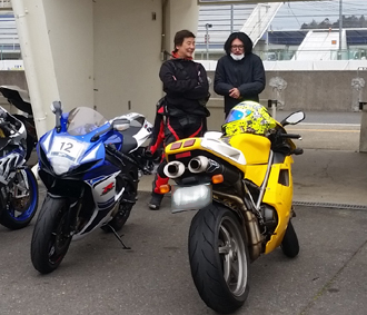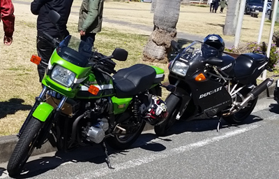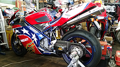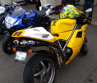 asaPくん号の隣に 黄色の ドカの996くん。