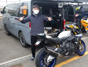 自慢の R-1M。tetsu的に言わせると 『宇宙船 RRRRRR』くらいな 意味不明なバイクですよ(笑)。