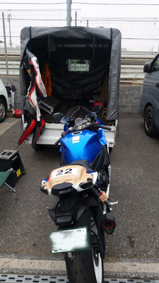 ブリーフィング後 tetsuとSinくんは即 トランポにバイク積み込んで 片付けました。