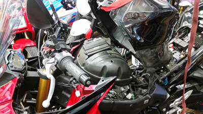 写真のようにエアクリーナー周りを見るのに タンクがリフトアップするのはありがたいのですが これもドカの900SSや旧モンスターのように 「あっと言う間」に到達できるわけではないところが やはりイライラします。