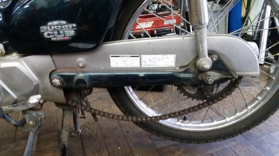 これも何度も書いてますが、カブはチェーンカバーが上下に付いているので余計にチェーンは外れづらいですが それでも外れた場合は リヤロックして転倒もありえますし、エンジン側で巻き込んで 最悪エンジンケース割って大破 終了ってこともあるので ナメてはいけませんよ!