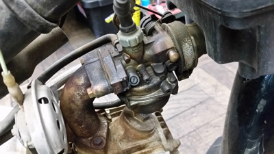 キャブレター周りがガソリンの滲みで茶色に変色しております。