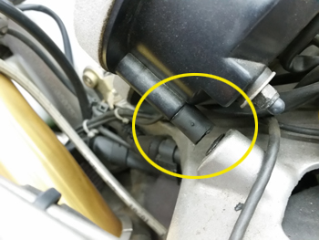 黄色丸印の部分が 取付ネジと防振ラバー部分が破断してしまっている状態。