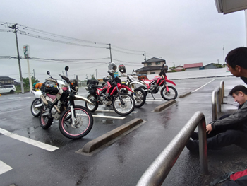 tetsuは福島辺りから既に雨の中走行していたのでカッパ装着のまま。