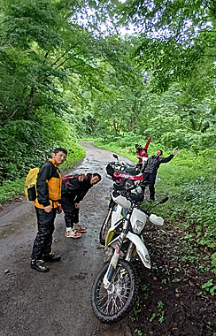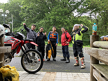 tetsu=CRF250L<S>、yossy=セロー250、F本くん=DRZ400S、Sinくん=CRF250LM改、部長=701ENDURO での 二泊三日 での 5人道中です。