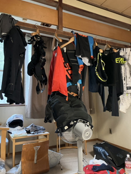 イスが多少濡れていても我々のような恰好にはなんら問題ないです。
