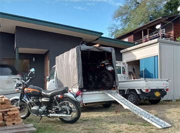 ついでに向こうで一緒に走りましょうということで 自分の XT250X改もしっかり積んで行きましたよ。