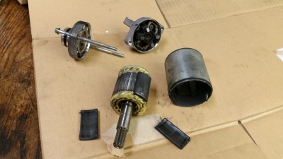 セルモータ 内部破損..... 全車皆兄弟 2021年09月10日 ホンダ FORZA Siさん 2年ほど前に スタータリレー絡みの修理した車両です。 前回も「ツイていない」案件でしたが それは結果的にホンダのリコールがかかった部分でしたので しょうがなかったということですが。 今回も久しぶりの相談でしたが 最近セル始動時にセルが弱くて始動困難な事があるとのこと。で、ご来店時に見てみると 一見 バッテリーが弱っての始動不良の感じ。でも エンジン始動可の時はなにごともなく始動出来る感じ? 前回の修理時にバッテリーは謎の中華製をオーナー様が積み替えておりましたものが継続使用中。この時点でバッテリーが第一疑いの目となるのは必須。 お預かりにてまずはバッテリーをテスト用に換装。しか~~し!それでも変化ありません。 ??と考えつつも別バッテリーにてセルモータ直結してみますと回ろうとしますがやはり弱い模様??? 当該車両 2015年式の新車より実走 5000km車。普通に考えると セルモータ等が逝ってしまうには考えが及びません。とは言っても それ以外では現状 スタータワンウェイギアがおかしいかどちらかしか考えられません。 ベルトカバー外して クランクを直回ししてみましたが ここでは全く問題なく回せますので エンジン本体側に原因はなさそうです。エンジン始動出来たときはエンジン音も普通でしたし。 ここからは不明なので セルモータを単体で外してみることに。とはいえそこまで行くのも一苦労なのがビッグスクーター系です。特に近年物のホンダさんスクーターは兎に角カウル類を留めているネジがない! ほぼ嵌め込みにて外観形成されてますがこれまた部品は全部 ABS樹脂。簡単に言うとプラスチックの強化版みたいな感じですがそうは言っても無理な力では割れるし折れます。 メーカーはバラす側のこと考えていないと いつも思います。 正直 この手の外装バラしで破損せずにバラせるのは 新車のときくらいかも(マジ)。 しかもカウルの嵌まり込んでいる方向や場所が初見で解るはずもないのに....です!(怒) 話を元にもどしまして長年の経験を武器になんとか上記難題をかいくぐり セルモータ単体を取り外し。(大分ここまでで集中力ポイント低下です っていうかここまでの作業でモチベーションが上がる人はいるのだろうか......) モーター芯部を手で回転方向に回す分には普通ですが 逆に回すとどうも違和感が。 この状態で再度 バッテリー直だと結構なトルク感でやはり回りますね..... FORZA Siの 正常なセルモータの回りかたを知る由もないので 益々 分かりませんが やはり直感の「違和感」に照準を合わせて セルモータ全交換の様相でしょう。 約3万しますので安い部品ではないですが ブラシ等だけの問題ではなさそうな第六感にてセルモータ全交換へ決定。 それと同時に意を決して セルモータを分解してみました(何気に タイプにより元に戻すこと自体が大変な事が多いのでtetsuはおいそれとバラしません)。 そして 意外な部分が破損していたという驚きの結末に。 モーター内 外縁部に本来接着不動にされているはずの磁石が全て剥がれてました。 上の写真の下の方の四角の板状の物が一部のそれです。 外縁部に残っている物も一部は亀裂、破損していました。 こんなになっているセルモータは正直 32年来のバイク屋人生で初めて見ます。 よく回っていたものです。まぁ原理的には回りますが..... そういう問題ではなくて! 2015年にもなった現在の技術でもこんな事があるんですね。 Hさん製なのに.....と思うのは tetsuだけではないでしょうが。 あ、コストや構造方向性を決めているのはH二輪ジャパンさんでしょうが製作はモータ制作会社ですので どちらに原因があるにしろ 「そりゃ~ないぜ セニョリータ!(泣)」って俺なら泣きたくなりますよ。 正直 驚きましたと共に オーナー様はついてなかったとしか言いようがありません。 ということでセルモ―タ交換にて始動不良から無事解放されました。 修理引き取り時のセルの始動音の違いに驚きの顔にて二度始動し直していたのには笑わせてもらいました(失礼)。