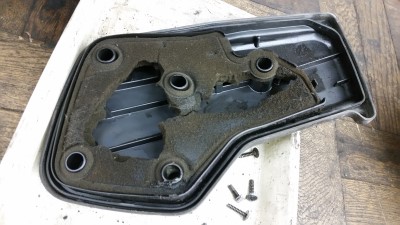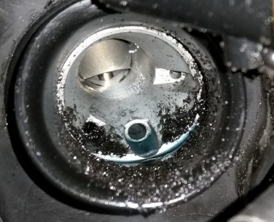 エアクリーナ バラバラ事件 全車皆兄弟 2021年09月06日 常連様 ホンダ リード100さん 走行 約5万キロ車。2万5千キロ時にtetsuがエンジンフルOHした車両です。最近 走行中にある日を境に エンジン始動時と加速時に不調が出たとのことでの原因探求依頼。 アイドリングや走ること自体はあまり影響がないようなので吸気系統に難ありなのか..... で、エアクリーナカバー外して「ハイ!これですね~」って感じでほぼ原因発覚。 たまにアルアルの 湿式エアクリーナエレメントのバラバラ事件でした。 正確には 「穴あき」ですが。二回に渡ってエレメントが崩壊してエンジンに吸われて行った模様。 で、その先はどうなっているかというと キャブレターの吸い込み口ですよね。 運が悪いとこの部分にバラバラになりきれなかったエレメントが残留して空気の吸い込みを遮断したり運よくここを通過しても2スト特有のリードバルブ部分に挟まって 今度は一次圧縮不良にてどちらもまともにエンジンが始動できなくなりますが今回はこの辺りを全て通り抜けて 大物は燃焼してしまった模様。 で、細かい破片が悪さするわけでして、それがこの拡大図。 キャブの吸い込み口周辺にある チョークバイパスやスロー系エアバイパスの通路を塞いでいる様子。全部塞がっていると それはそれで絶不調になるのですが適度に流路が確保されていると今回のような「微妙に調子悪し」ってなります。 ま、今回のように古い2ストなどはこればかしが不調の原因ではない場合も多々ありますが..... 今回は キャブレター清掃&エアクリーナエレメント新調、ついでにプラグ交換にて調子も戻ったのでヨシヨシでした。