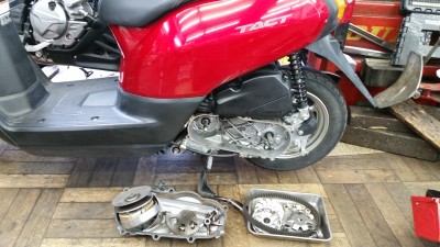 2017年式 7000km走行の ホンダ タクトベーシックの駆動系全バラで確認中。